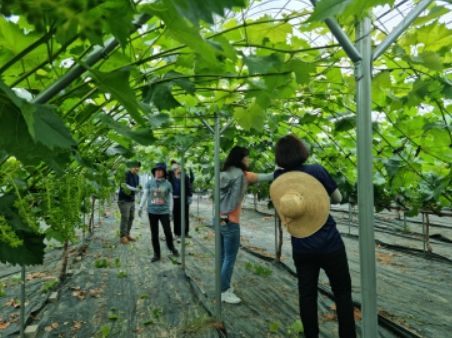 직원들은 아침 일찍 현장에 집결하여 농가주로부터 포도 순 따는 방법에 대해 간단히 교육받은 후 작업을 시작하여 포도 순 따기 작업에 구슬땀을 흘렸다. 오전부터 촉촉한 비가 내려 전날보다 선선해진 날씨 덕분에 직원들은 더욱 활기차게 일을 할 수 있었다.