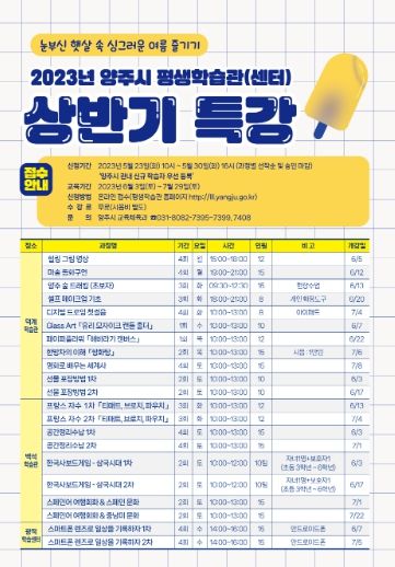 2023년 상반기 특강은 신규학습자(양주시민 우선)를 대상으로 총 527명의 수강생을 모집한다.