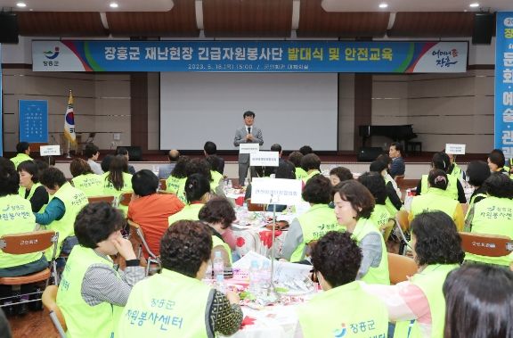 [제주교통복지신문 김강석 기자] 장흥군은 18일 군민회관에서 ‘장흥군 재난현장 긴급자원봉사단’ 발대식을 가졌다고 밝혔다.