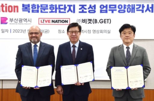 이날 협약식에는 박형준 부산시장을 비롯해 라이브네이션(미국) 수석부사장인 그레고리 길린(Gregory Gillin), 특수목적법인(SPC) ㈜비겟(B.GET) 이승한 대표이사가 참석해, 부산에 2만석 규모 최첨단 아레나 공연장 및 복합문화단지를 조성하고 첨단 문화 콘텐츠를 구축해 부산이 문화산업 및 관광 거점도시로 도약하는 데 힘을 모으기로 약속했다.
