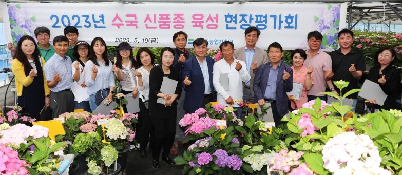 이번 평가회에서는 개화가 한창 진행중인 수국 육성계통 200종에 대한 주요 특성 소개와 기호도 평가를 거쳐 최종으로 40여 계통을 선발했다.