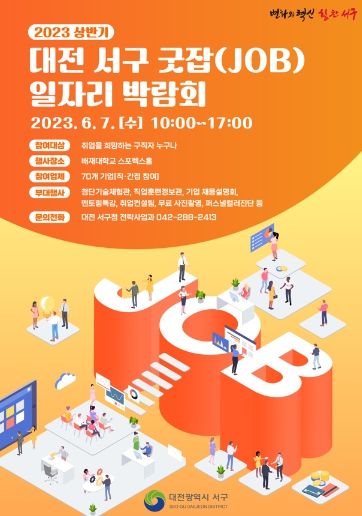 [제주교통복지신문 김강석 기자] 대전 서구는 채용시장을 활성화하고 구직자와 구인 기업의 미스매치 해소를 위해 오는 달 7일 배재대학교 21세기관 스포렉스홀에서 상반기 일자리박람회를 개최한다.