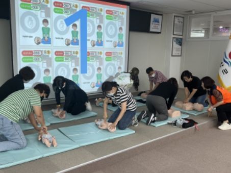 이번 교육은 행정안전부 안전교육사업의 일환으로 한국보육진흥원이 주관하여 심폐소생술, 자동심장충격기(AED), 기도폐쇄 시 대처, AR․VR 체험 등 실습체험으로 진행했다.