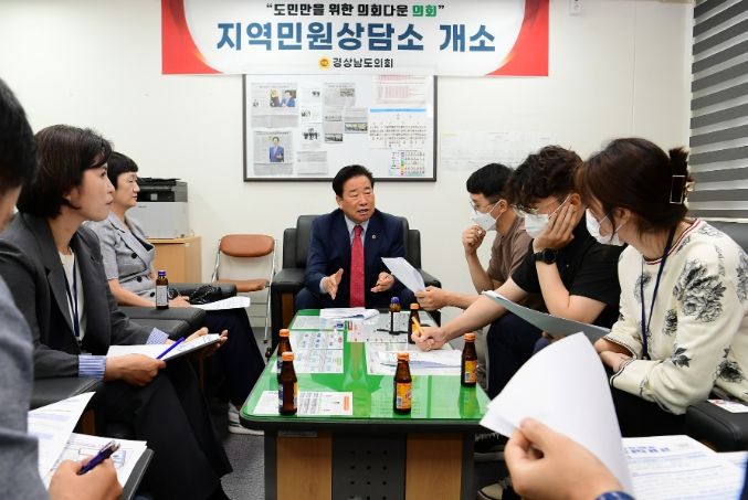 경상남도의회에서는 지역현안에 대해 보다 직접적인 소통을 하고자 서부청사 지역민원상담소를 3월부터 운영하고 있으며, 일정을 사전에 합의하여 관련 건의사항에 대한 도민의 의견을 도의원 및 도의회 민원 담당자에게 직접 전달 할 수 있다.