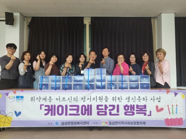 [제주교통복지신문 김강석 기자] 이천시 설성면지역사회보장협의체(공동위원장 김홍주, 이병상)는 지난 5월 18일, 만80세 이상 취약계층 어르신의 생신축하를 통한 정서적 지원 및 안부확인을 위한 '케이크에 담긴 행복' 사업을 실시했다.