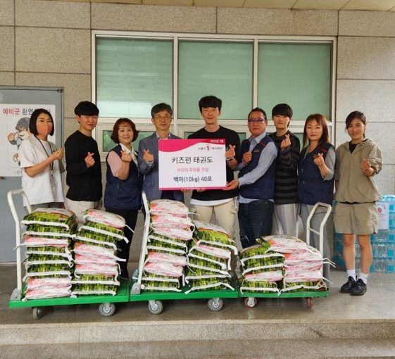 키즈펀 태권도는 매년 작은자리종합사회복지관에 백미를 후원해 왔다. 이번에는 ‘효 축제’를 기념해 어려운 이웃에게 전달해 달라며 신천동 마을축제추진위원회에 백미를 후원했다.