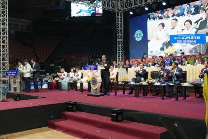 [제주교통복지신문 김강석 기자] 하윤수 부산광역시교육감이 20일 오후 3시 사직실내체육관에서 회원과 가족 등 3천여 명이 참석한 가운데 열린 ‘국제라이온스협회 355-A(부산)지구 제52차 연차대회 및 총재 이·취임식’에서 인사말을 하고 있다.