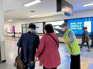 천안역 이용 고객 중 김○진(25)은 “제가 타 지역에서 올라와서 지하철을 처음 이용하게 되어 노선의 어려움이 있을 때 지하철지킴이 어르신들께서 친절하고 세심하게 알려주셔서 무사히 지하철을 이용할 수 있었어요. 감사합니다.”라고 말했다.