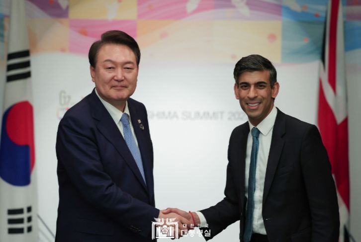 [제주교통복지신문 김강석 기자] 윤석열 대통령은 5. 20일 저녁 히로시마 G7 정상회의 참석 계기에 리시 수낙(Rishi Sunak) 영국 총리와 정상회담을 개최해 양국 관계 발전, 실질 협력 강화, 국제정세 동향, 글로벌 협력 방안에 대해 의견을 교환했다.