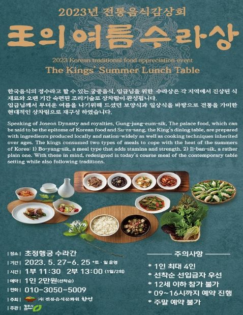 음식감상회 구성은 궁중에서 임금이 무더운 여름을 나기위해 먹었던 보양식과 일상식을 바탕으로 전통을 가미한 현대적 상차림으로 구성됐다.