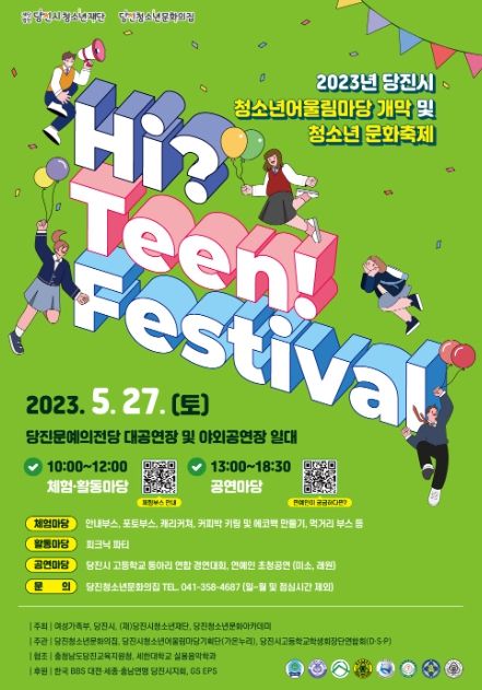 2023년 당진시청소년어울림마당은 5월 27일 개막식을 시작으로 8/19, 9/2, 9/9, 10/14, 10/28, 11/18일 및 청소년 e-sports대회 참여까지 총 8회에 걸쳐 진행될 예정이며, 청소년들의 잠재 되어있는 끼를 발산할 수 있는 공연마당, 다양한 체험 및 먹거리를 즐기며 체험할 수 있는 체험마당, 피크닉 파티, 워터파티, 뉴스포츠 등 친구와 함께 할 수 있는 활동마당으로 운영된다. 2023년 당진시청소년어울림마당 체험마당에서는 포토부스, 캐리커쳐, 먹거리, 그립톡 만들기, 키링 만들기, 반지 만들기, 스칸디아모스 액자 만들기, 도어벨 만들기 등 여러 가지의 체험을 즐길 수 있으며, 청소년 동아리에서 진행하는 캠페인 활동도 참여할 수 있다. 활동마당에서는 청소년들의 쉼터와 피크닉 파티를 즐길 수 있으며, 이번 어울림마당 중 공연마당은 당진시 고등학교 동아리 연합경연대회는 기존 “Ready? 高!”에서“Hi? Teen!”(High와 Teenager의 합성어)으로 2023년 당진시고등학교학생회장단(D.S.P)가 직접 변경하며, 기획부터 운영까지 한다는데 큰 의미가 있다.