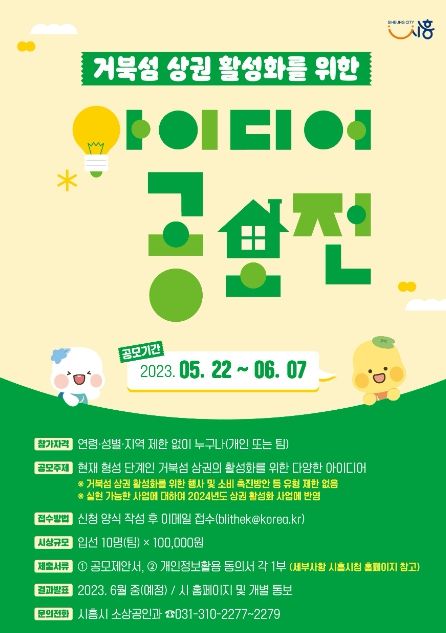 이메일로 접수하면 된다. 아이디어 공모전 관련 세부 사항은 시흥시청 누리집을 통해 확인할 수 있다.