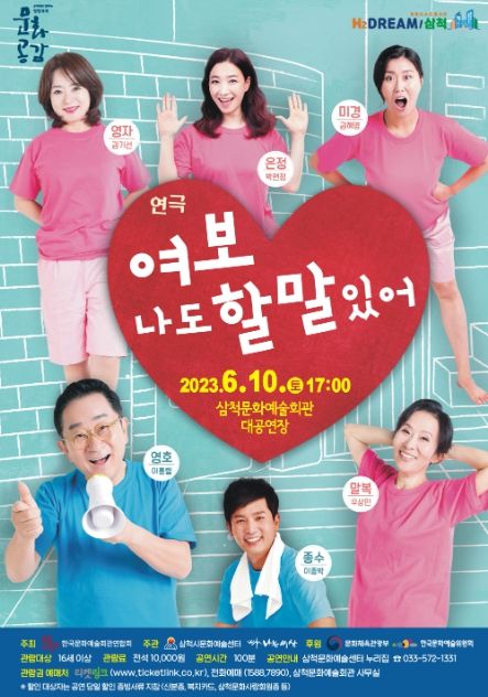 [제주교통복지신문 김강석 기자] 삼척시가 ‘2023년 문예회관과 함께하는 방방곡곡 문화공감’ 사업의 일환으로 오는 6월 10일(토) 오후 5시 삼척문화예술회관 대공연장에서 연극 “여보 나도 할 말 있어” 공연을 개최한다.