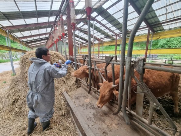 구제역 예방 접종은 매년 2회 전국 일제 접종으로 시행하고 있어 지난 4월 3일부터 5월 12일까지 소, 염소에 대하여 상반기 접종을 완료했으나, 최근 무섭게 확산하고 있는 구제역에 대비하기 위한 긴급조치로 보다 높은 항체가를 확보하고자 추가 백신접종을 실시했다.