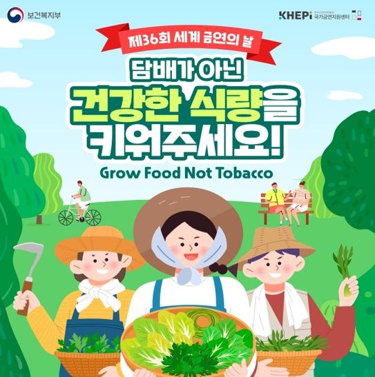 세계보건기구는 올해 제36회 세계금연의 날 주제로 담배 경작의 폐해를 전달하고 금연에 대한 공감과 의지를 고취하기 위해 ‘담배가 아닌 건강한 식량을 키워주세요’로 정했다.
