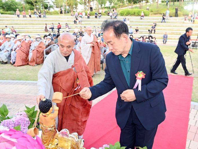 식전 공연인 바라춤을 시작으로 육법공양, 삼귀의, 반야심경 봉독, 발원문, 관불의식을 진행했으며, 특히 문경시 불교연합회에서 문경시장학회에 3백만원을, 문경시 불교 신도연합회에서 이웃돕기 성금으로 2백만원을 전달하며 따듯한 온기를 더했다.