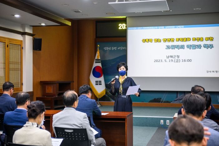 [제주교통복지신문 김강석 기자] 남해군은 지난 19일 남해군청 대회의실에서 5급 이상 간부공무원 40명이 참석한 가운데 성희롱·성폭력 예방교육을 실시했다.