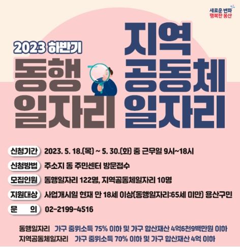 [제주교통복지신문 김강석 기자] 서울 용산구가 오는 30일까지 2023년 하반기 동행일자리 사업(옛 공공근로사업) 참여자를 모집한다.