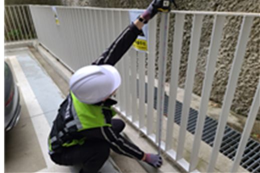 계단 내·외부 난간에 대하여 흔들림은 없는지, 폭은 적정한지, 추락 위험성은 없는지 등을 체크리스트에 따라 집중 점검했으며, 보수·보강이 필요한 시설은 즉시 안전조치 후 조속히 공사를 시행하여 안전사고를 예방하고 있다.
