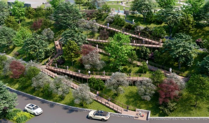 하지만 진입로가 가파른 경사로와 나무계단으로 되어 있어 탓에 그동안은 휠체어 이용자 등 보행 약자가 방문하기는 어려운 환경이었다. 이에 강동구는 사회적 약자 역시 공원의 아름다운 경관을 감상할 수 있도록 ‘무장애 데크로드 조성사업’을 계획해 올 11월 준공을 목표로 하고 있다.