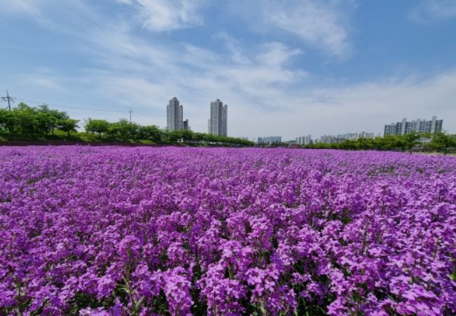 올해는 ‘보라색 유채(딤스로켓)’가 만개해 시민들뿐만 아니라 외지에서도 많은 방문객들이 찾아와 인기를 끌고 있다. 보라색 유채는 작년 10월에 파종해 겨울을 나고, 지난 4월부터 개화해 5월에 만개했다.