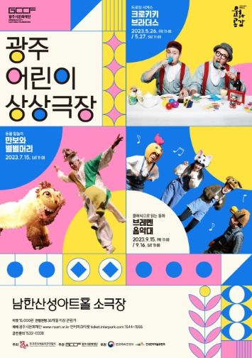 ‘광주 어린이 상상극장’은 한국문화예술회관연합회가 주최하는 '문예회관과 함께하는 방방곡곡 문화공감사업'의 일환으로 우수한 공연의 나눔을 통해 더욱 쉽게 문화예술을 접할 수 있는 기회를 제공하고자 마련된 사업이다. 올해는 △드로잉 서커스 ‘크로키키 브라더스’ △동물 탈놀이 ‘만보와 별별머리’ △클래식으로 읽는 동화 ‘브레멘 음악대’ 등 총 3개 공연이 진행된다.