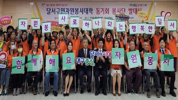 [제주교통복지신문 김강석 기자] 대구 달서구와 달서구자원봉사센터(센터장 권혁환)는 지난 19일 진천동행정복지센터 3층 대회의실에서 달서구민 자원봉사대학 수료생 60여명이 참여한 달서구민 자원봉사대학 동기회 봉사단 발대식을 개최했다고 밝혔다.
