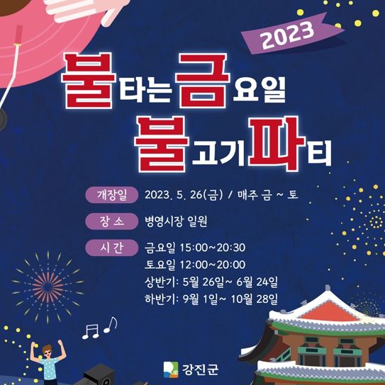 강진 불금불파 행사는 7월과 8월은 폭염으로 휴장하며, 10월 말까지 매주 금요일과 토요일 계속된다.
