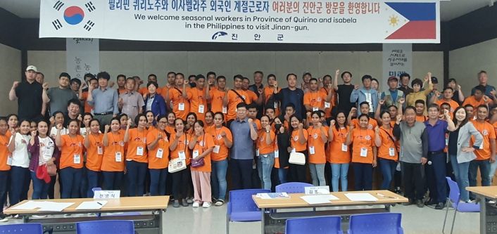 군에 따르면 지난 20일 농업기술센터 3층 강당에서 농가와 필리핀 퀴리노주 52명, 이사벨라주 성실 근로자 재입국 4명이 관내 농가에 잘 적응 할 수 있도록 사전 교육을 받고 표준근로계약서를 작성하는 등 입국 및 농가 배치 행사를 추진했다.