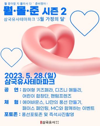 [제주교통복지신문 김강석 기자] 삼국유사테마파크는 가정의 달 스페셜 축제 '뭘 몰 준(뭘 좋아할지 몰라서 다 준비했어)'을 시즌1의 인기에 힘입어 더욱 다채로운 프로그램과 함께 시즌2를 오는 28일 개최한다.