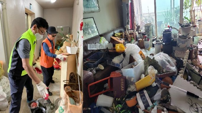 특히, 수십 개의 화분과 여행용 가방, 폐가전, 가구, 잡동사니 등 75리터 공공용 봉투 200장, 50리터 규격 마대 120장, 1톤 화물 트럭 10대 분량에 달하는 폐기물이 수거됐다.
