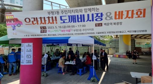 [제주교통복지신문 김강석 기자] 부평구 부평3동 주민자치회는 지난 19일 백운고가 하부 백운역 북광장에서 주민 300여명이 참여한 가운데 ‘으라차차! 도깨비 시장’ 바자회를 진행했다.