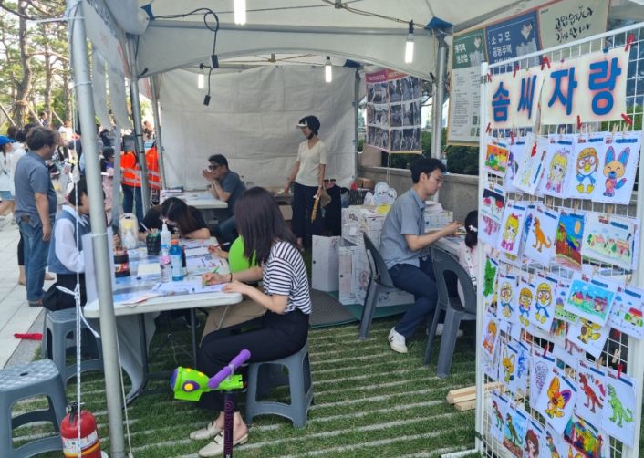 못 박기 게임장에서는 아이들이 서툴지만 야무진 망치질 실력을 뽐내며 상품을 받고 포토존에서 기념촬영을 하며 추억을 쌓았다.