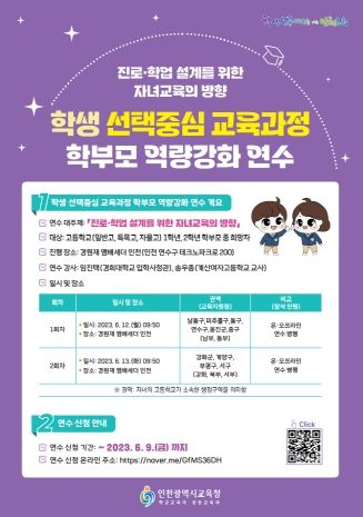 [제주교통복지신문 김강석 기자] 인천광역시교육청은 학생 선택 중심 교육과정 학부모 역량 강화 연수를 6월 12일부터 2일간 진행한다.