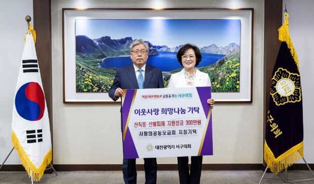 [제주교통복지신문 김강석 기자] 대전 서구의회는 22일 의장실에서 대전 서구 산직동 산불피해 주민을 지원하기 위한 성금을 사회복지공동모금회에 지정기탁했다고 밝혔다.