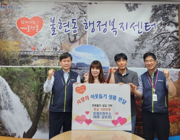 [제주교통복지신문 김강석 기자] 동두천시 불현동 행정복지센터는 지난 18일, 이레인하우스(대표 김보라)에서 가정의 달을 맞아 저소득층 이웃들을 위해 성금 100만원을 기부했다고 전했다.