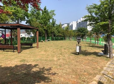 ‘반려동물 놀이터’는 미평공원 내 약 130평(440㎡) 규모로 9천만 원의 사업비를 들여 조성됐다. 천연잔디·울타리·놀이기구(징검다리, 시소)·견주 쉼터·반려견 음수대·배변 봉투함 등을 갖췄다.