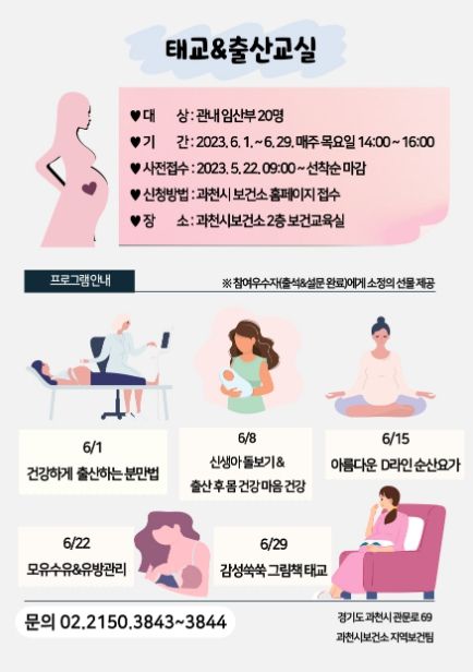 한편, 과천시보건소는 오는 10월에도 태교 & 출산교실을 열며, 해당 교육은 9월에 접수를 받을 예정이다.