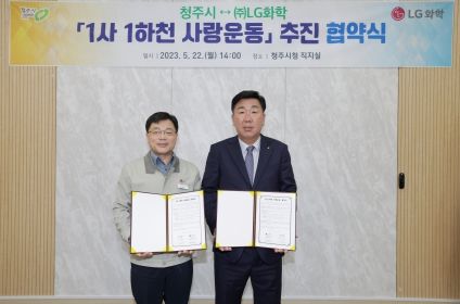 [제주교통복지신문 김강석 기자] 청주시는 LG화학과 22일 임시청사 직지실에서 ‘1사 1하천 사랑운동’추진을 위한 협약을 체결했다.