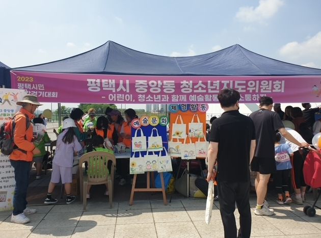 [제주교통복지신문 김강석 기자] 평택시 중앙동 청소년지도위원회(위원장 김래현)는 지난 20일 이충레포츠공원에서 개최된 ‘2023 평택시민 건강걷기대회’에서 관내 청소년 300명이 참여한 가운데 ‘나만의 에코백 그림그리기’ 행사를 진행했다.