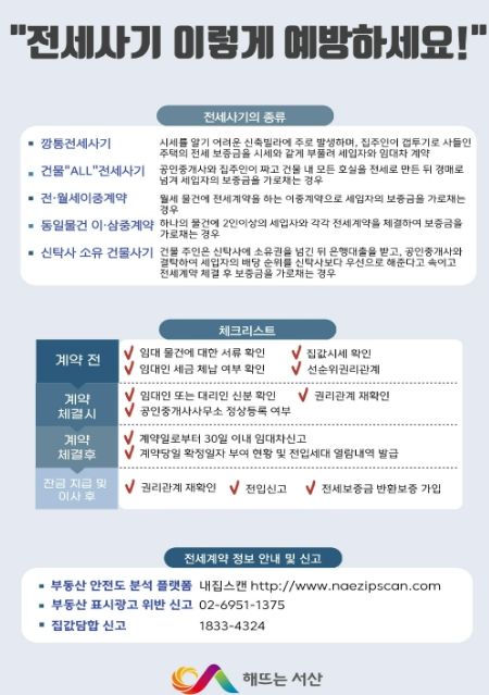시에 따르면 전세 사기의 종류로 깡통전세 사기, 전․월세 이중계약, 동일 물건 이중~삼중 계약 등이 있으며, 이를 방지하기 위해 계약 전 확인 사항을 강조했다.