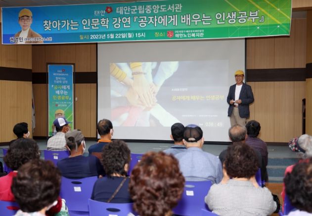 군에 따르면, 태안군립중앙도서관은 지난 22일 태안노인복지관 대강당에서 시설 이용자 30여 명을 대상으로 ‘찾아가는 인문학 강연’을 실시했다.