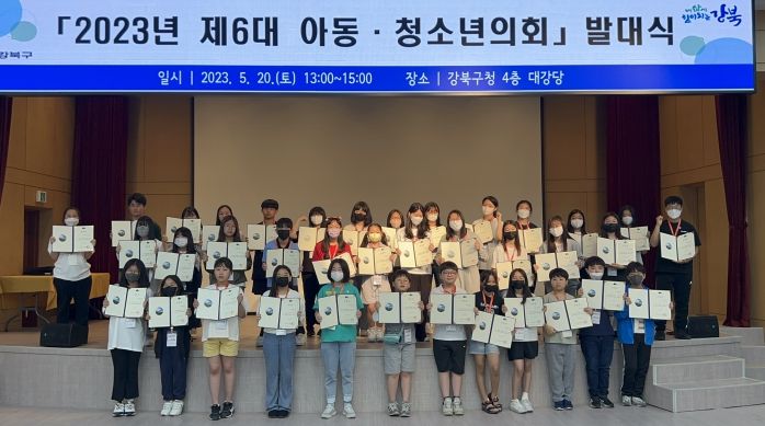 [제주교통복지신문 김강석 기자] 서울 강북구는 지난 20일(토) 오후 1시 강북구청 4층 대강당에서 ‘제6대 아동‧청소년의회’ 발대식을 개최하고 공식 출범했다고 밝혔다.