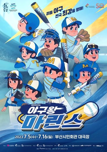 ‘야구왕, 마린스!’는 오는 7월 5일부터 7월 16일까지 부산시민회관 대극장에서 ▲수․목요일은 오전 10시 30분, ▲금요일은 오후 7시 30분, ▲토요일은 오전 11시 및 오후 2시, ▲일요일은 오전 11시에 공연되어 다양한 시간대에 만날 수 있다.