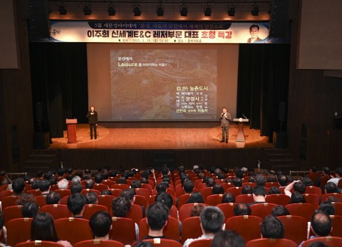 이날 특강에서 이주희 대표는“문경, 국토의 단전에서 세계의 단전으로”라는 주제로 전 세계 레저산업 현황 및 전망, 새로운 여행 트렌드를 언급하며 레저가 선택이 아닌 삶의 필수 요소임을 강조했다.