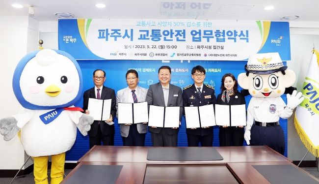 [제주교통복지신문 김강석 기자] 파주시는 22일, 50만 시민의 교통안전 상생방안을 마련하기 위해 파주시의회, 파주경찰서, 파주교육지원청, 대한노인회 파주시지회와 교통안전 업무협약을 체결했다.
