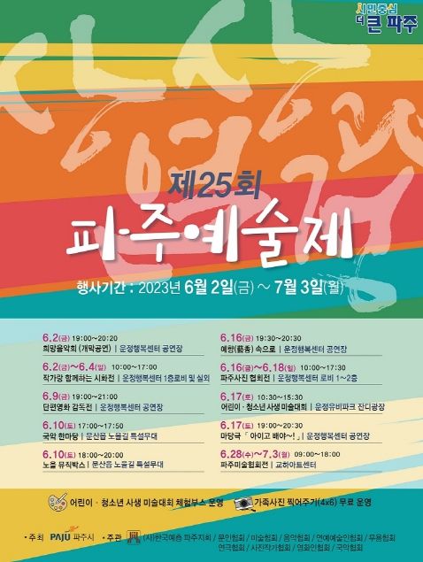 [제주교통복지신문 김강석 기자] 파주시는 6월 2일부터 7월 3일까지 제25회 파주예술제를 개최한다.