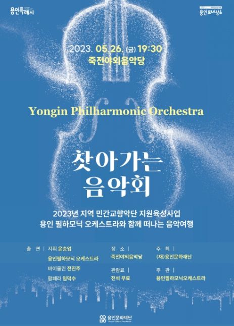 이번 찾아가는 음악회는 지난 4월에 진행한 기획공연과 마찬가지로 용인문화재단의 '2023 지역 민간교향악단 지원육성사업'의 일환으로 기획됐으며, 용인시 내 오케스트라 장기 지원을 통해 시민의 클래식 콘텐츠 향유 기회를 확산하고 지역예술단체 활성화에 기여할 전망이다.