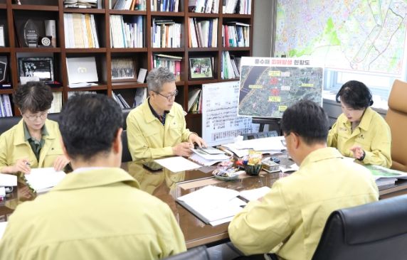 이번 풍수해 모의훈련은 태풍 상륙에 따른 집중호우 시 선제 대응 및 신속한 대응·복구를 목표로 설정하고 실시했으며, 시나리오를 토대로 협업부서 간 재난안전통신망 단말기 교신(무전)을 통해 훈련을 진행했다.