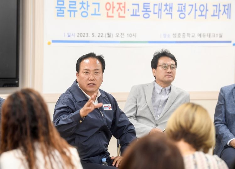 [제주교통복지신문 김강석 기자] 이권재 오산시장이 지난 22일 오전, 성호중학교에서 열린 풍농 물류센터 관련 주민대책위원회 간담회에 참석해 학생 통학안전 개선사항에 대해 설명했다.